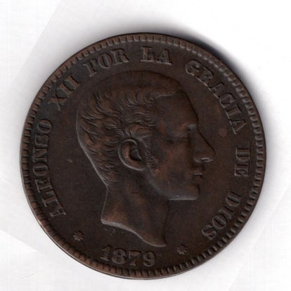 Spain, 10 Centimos 1879. VF-EF. DY17919