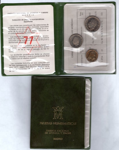 Spain. Pruebas 3 coin set. "77", obverse date 1975. DY18447