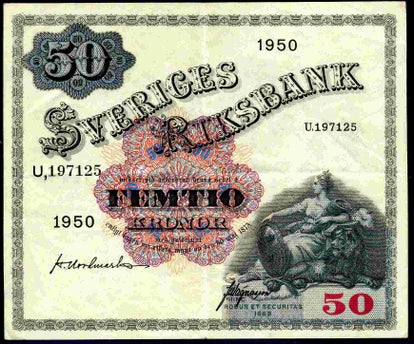 Sweden, 50 Kronor, 1950. (WPM 35). U.197125. GVF.