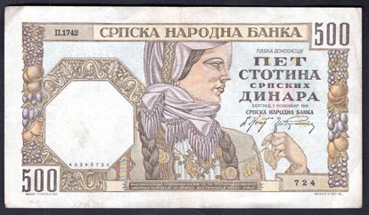 Yugoslavia. 500 Dinars 1941. 43543724. Crisp VF. DY19840