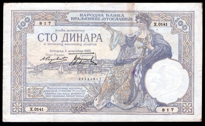 Yugoslavia. 100 Dinara 1929 03524817 (WPM 27a) Fine. DY20517