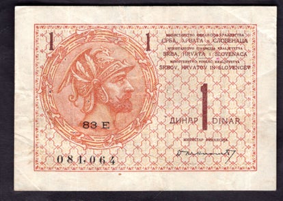 Yugoslavia. One Dinar 081,064 C.1920s Crisp F-VF. dy23694