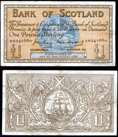 Bank of Scotland. £1 Sep 1956 GF+. dy20673