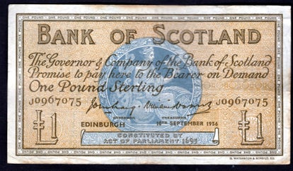Bank of Scotland. Sep 1956 Good F-VF. dy22788