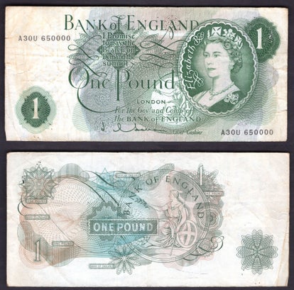 Hollom. £1 (1963) "G" replacement M10N 390233 Crisp F-VF. dy22179