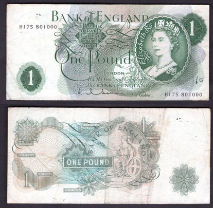 Hollom. £1 (1963) "G" rev. Replacement M12N 269279 VG. dy22181