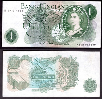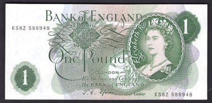 Bank of England, Fforde, £1 (1967), "G" rev. K58Z 588948 (Duggleby B303).