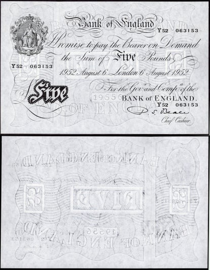 Beale. £5 August 6 1952 (BYB BE94c) Y52 063153.