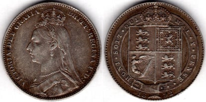 Great Britain. Victoria. Shilling 1892. Heavy clean on obverse. dy23850