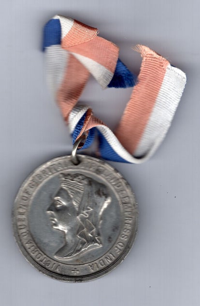 Queen Victoria. White Metal 1887 Jubilee medallion.