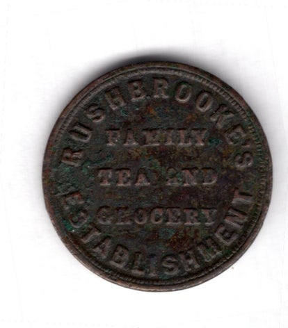 Rushbrooke's Willenhall. Family Tea & Grocery Token 1844.