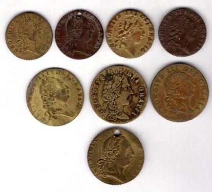 Beecroft & Sons Nottingham ad on reverse of imitation spade Guinea. DY11412