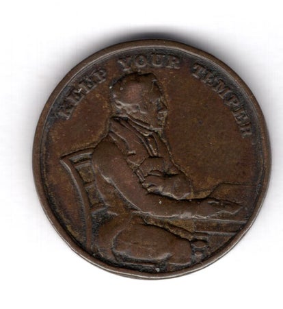 Great Britain "Keep your temper" gaming counter, C.1840s.