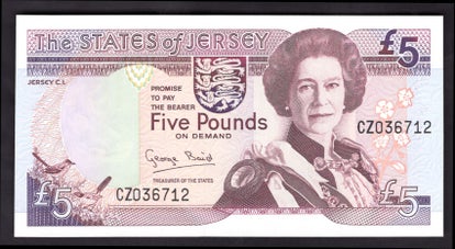 Jersey, £5, Baird signature (1993), replacement CZ036712 (BYB JE24br). UNC.