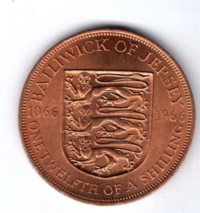 Jersey. 1/12th Shilling 1877. Cleaned.