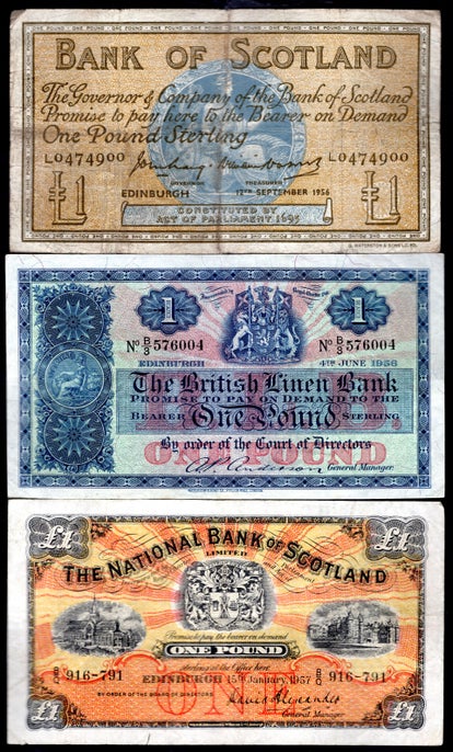 Scotland, 6 x £1, One each from Six different banks, 1955-1959. DY17989