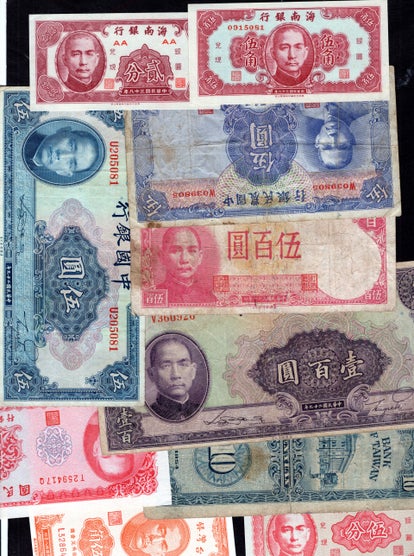 China/Taiwan. 20 banknotes, mixed grades, allow for faults.