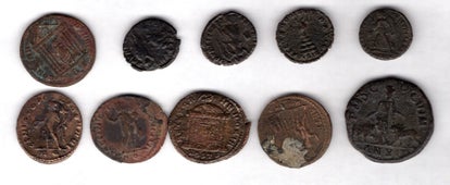 Ten Roman Coins. All with varying degrees of problems, verdigris, chipping, various accretions.
