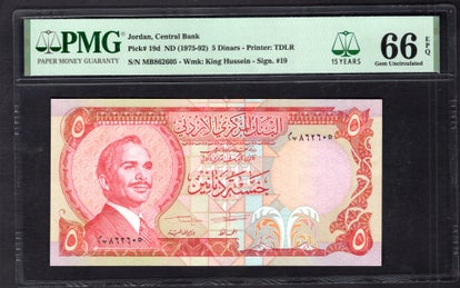 Jordan, 5 Dinars (1975-92) (WPM 19d), 862605. 66 Gem UNC. DY12432