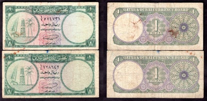 Qatar & Dubai 2 x 1 Riyal short lived series (1960s). DY19620