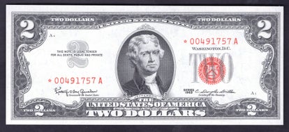 U.S.A. Legal Tender, $2, 1963, replacement, *00491757A (WPM 382).