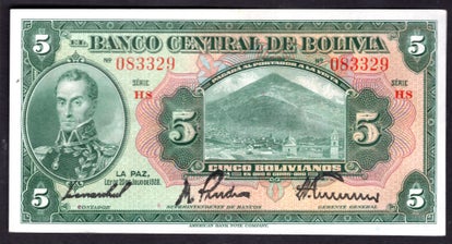 Bolivia, 5 Bolivianos, 20-7-1928, H8 083329.