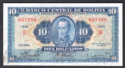 Bolivia, 10 Bolivianos, 20-7-1928. Q 037280.
