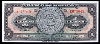 Mexico, 1 Peso, 17-1-45, 0372240 (WPM 38c).