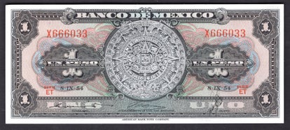Mexico. One Peso 8-IX-54. ET X666033 AU-UNC.
